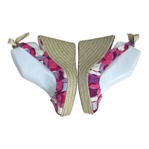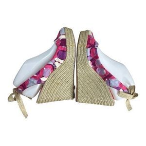Coach Maritza Pink Purple Printed Slingback Platform Wedge Size 8B Open Toe