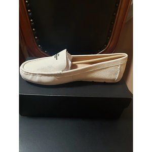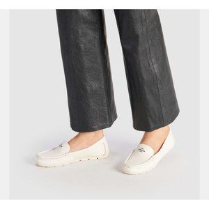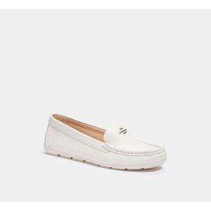 Coach Marley Driver Women's White Leather Low Top Closed Toe Shoes Size 9.5M. A fresh take on a forever favorite, our streamlined Marley Driver is the perfect choice for workdays and weekends. The round-toe slip-on style is crafted of textured leather and finished with a flexible grooved rubber sole for all-day comfort.