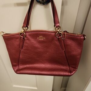 Coach Maroon Leather Shoulder Bag with Gold Accents