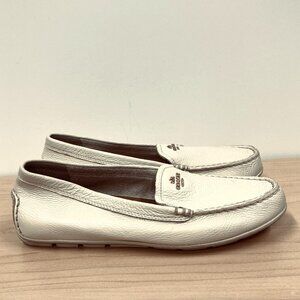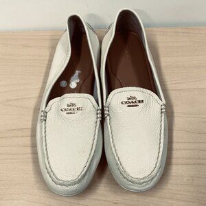 Coach Mary Lock Up Loafers, Size 9 B Ivory Cream Pebbled Leather Moccasins Shoes