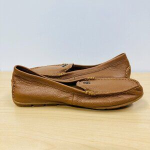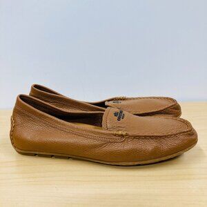 Coach Mary Lock Up Loafers, Size 9 B Light Brown Pebbled Leather Moccasins