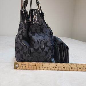 Coach Matching Purse Set of 3 Handbag Wallets Black Canvas Patent Leather