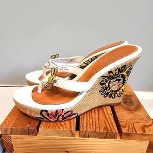 Coach "Mattie" Calf Bumblebee Wedge Sandals Women's Size 6