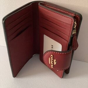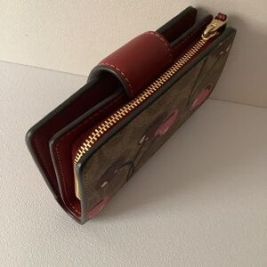 Coach Med Corner Zip Wallet Clutch CZ342 Brown Signature Canvas Cherry Print NWT