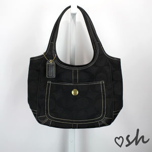 Coach Medium Black Canvas Ergo Signature Tote Bag