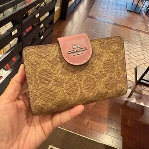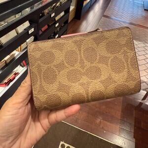 Coach Medium Corner Zip Wallet In Signature Canvas CW786 Dusty Pink
