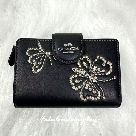 New With Tags, Coach Medium Corner Zip Wallet With Butterfly Print In Leather/Black CCL65 NWT from smoke and pet free environment.