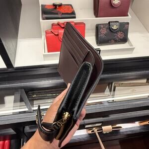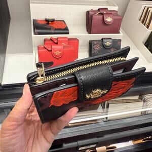Coach Medium Corner Zip Wallet With Floral Print CCL63 Black/Red