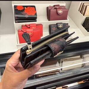 Coach Medium Corner Zip Wallet With Floral Print CCR20 Black/Wine Multi