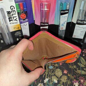 Coach Medium ID Zip Wallet w/colorblock interior C5895 NEON!