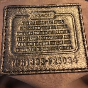 Used/in Good Condition Medium sized Coach Satchel bag. Color is bronze/grey. Open interior with two side pockets and one zipper pocket as well as two large outer pockets. Slightly worn but no visible signs of wear.