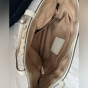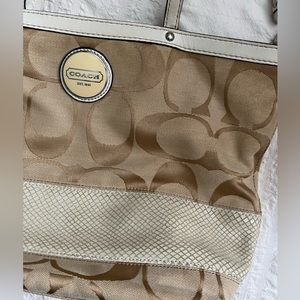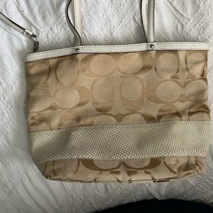 Medium sized Coach tote bag perfect amount of room for every day wear! Small stain that would easily come out. Fishnet detailing around the bottom