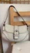 Coach Medium Vintage Leather Soho Flap Bag in Silver/Chalk features Two inside pouches, an Inside zip pocket, Magnetic snap closure, Outside slip pocket, Detachable handle with a Chalk & Dark Brown leather side; 7" drop, Silver-tone hardware and a Dark brown Fabric lining. Imported. Style F10192. Produced in November 2009. Measurements: 12” L x 8” H x 2” W. Used in Very Good Vintage Condition with exterior wear from use.
