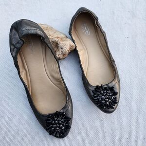 burnished antiqued metalic flats. leather with cluster embellished. Preloved condition. All sections of interest as well any known flaws have been documented in the photos and noted as thoroughly as possible. if there are no known flaws, none will be noted. Please feel free to ask any questions before purchase 🙂.
