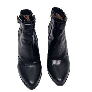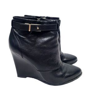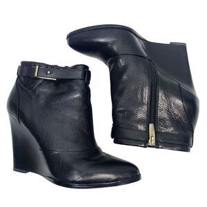 Coach Melody Wedge Bootie Heels 8 Black Leather Buckle Side Zip Ankle Boots