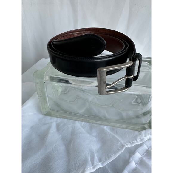 Coach Mens 38 Calfskin Leather Belt Size 38 Black Silver Tone Brass Buckle.