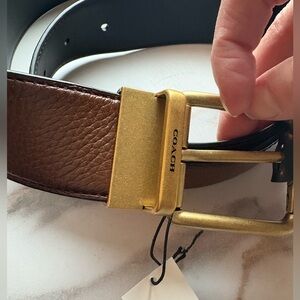 Coach Men's Brown/ Black reversible Belt with Gold Buckle