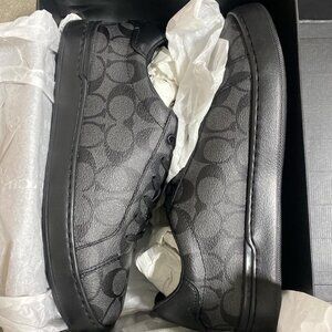 Coach Men's Clip Signature Leather Low Top Sneaker, Size US 8.5, Charcoal/Black