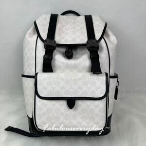 New With Tags, Coach Men's League Flap Backpack In Signature Canvas White/Black CU201 NWT from smoke and pet free environment.