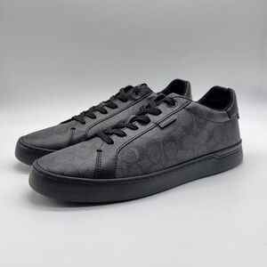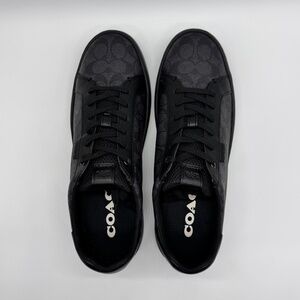 Coach Men's Lowline Signature Leather Sneakers Black C Logo Size 11.5 New