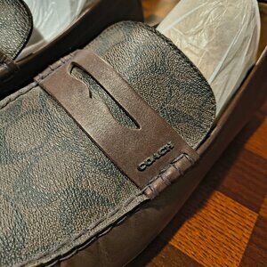 Coach Men’s Signature Canvas & Leather Penny Driver Loafers – Dark Brown – Size