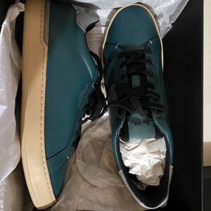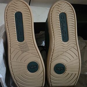 New, never worn, in box! Step out in style with these Coach men's green sneakers. Featuring a sleek design and comfortable fit, these shoes are perfect for any casual outing. The green color adds a unique touch to your wardrobe. I bought these for myself, not realizing they were men's until after the return windows had closed.