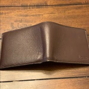 Pre-owned. Bought new and Never used. Authentic Men’s coach wallet. Brown, multiple slots for cards and a window face for ID