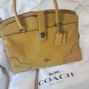 Comes with Coach dust bag. Leather coach Mercer purse. Color is like a brown mustard but works with almost anything! Used once and stored in dust bag.
