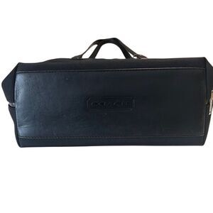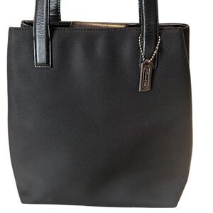 Coach Mercer Black Nylon Leather Trim Hang Tag Triple Section Shoulder Bag 7411 Triple section. Middle section has zip closure. Two open sections with slide pockets and zip pocket. Leather bottom with Coach embossed logo. Corners in great condition. Clean inside and out. Wear on edge of straps. See pictures. Measurements are in the pictures. Ships quickly, within a day. Smoke free home.