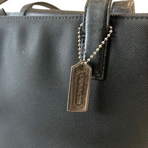 Coach Mercer Black Nylon Leather Trim Hang Tag Triple Section Shoulder Bag 7411