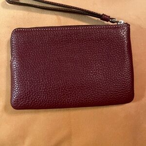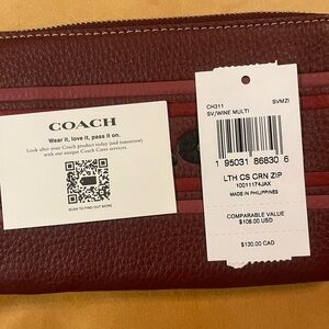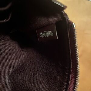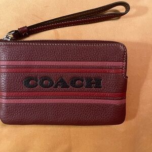 Wine with Black “COACH LOGO” centered and Cranberry and Mauve stripe.