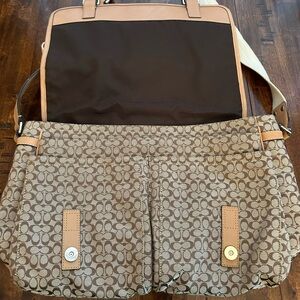 Beautiful Coach Messenger Bag. Great pre owned condition. Multiple pockets inside and one out. No rips, tears or stains. Noteable wear only on bottom corners. Selling from a smoke free home. Fits a laptop perfectly with room to spare.