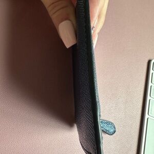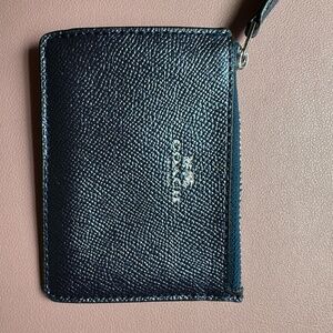 Coach Metallic Blue ID Coin Case with ID window and keychain
