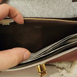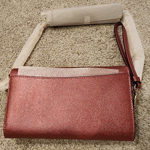This is a super pretty pink metallic chain crossbody. The chain is removable and has a removable wristlet strap as well. Many card pocket insides and turn lock closure. New with tags.