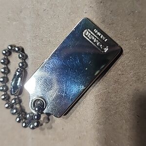 Chic metallic keychain with Coach emblem. Ideal for bags or keys.