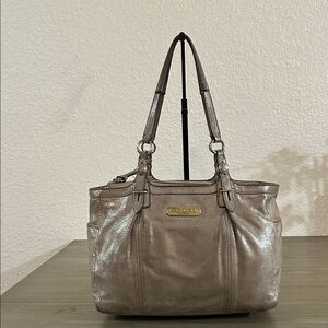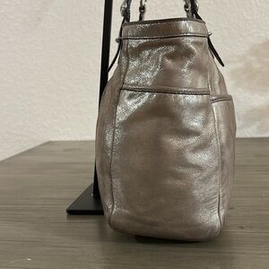 Elevate your style with this stunning metallic silver tote bag from Coach. Perfect for any occasion, this bag combines elegance and functionality.