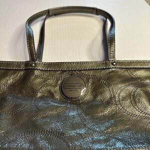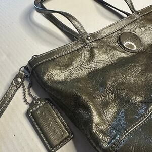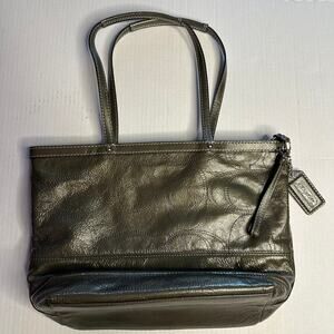 Coach Metallic Grey Patent Leather Bag 2010 Vintage Chic Sleek Evening Satchel