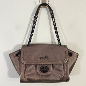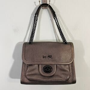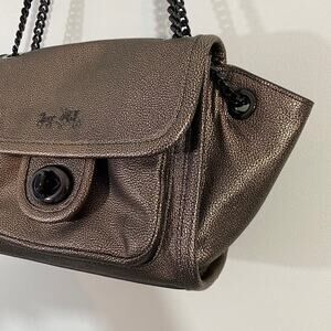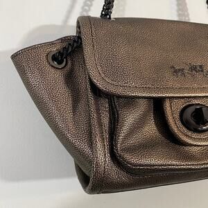 Coach Metallic Leather Ranger Flap Turn Lock Multi-Use Shoulder Bag Crossbody