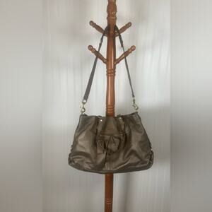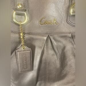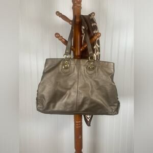 Coach Metallic Leather Satchel + Signature Silk Scarf Set | Classic Monogram Duo