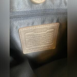 Preloved authentic Coach satchel paired with an oversized matching silk Coach scarf — a timeless duo for effortlessly chic, coordinated style.