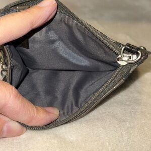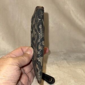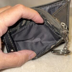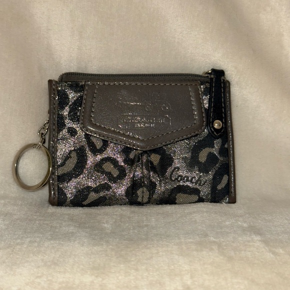 Chic Coach wallet with metallic leopard pattern. Includes key ring for convenience.
