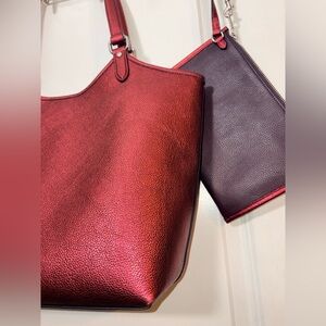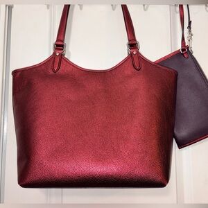 ✨ Coach Metallic Raspberry Day Tote & Matching Pouch Set ✨