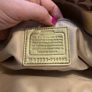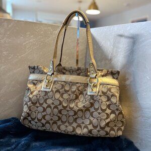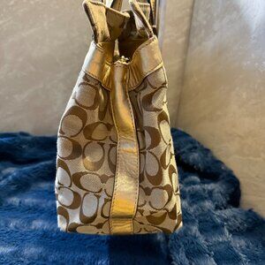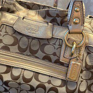 Coach Metallic Rose Gold Khaki Signature Penelope Leather Duffle Hobo Handbag
