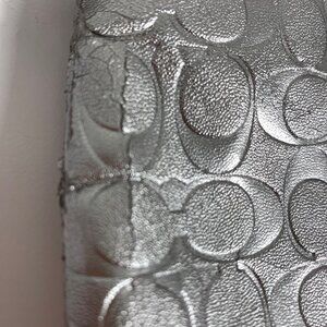 Coach Metallic Silver Corner Zip Wristlet Clutch Wallet Signature Leather Heart