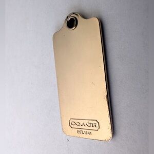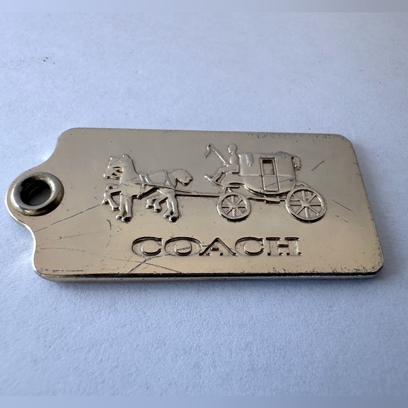 Coach replacement silver horse & carriage metal hang tag. The Han tag has some scratches and is a bit tarnished.