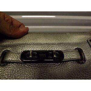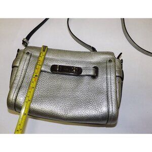 Coach Metallic Swagger Clutch Crossbody Bag Silver Secure Turnlock Closure
