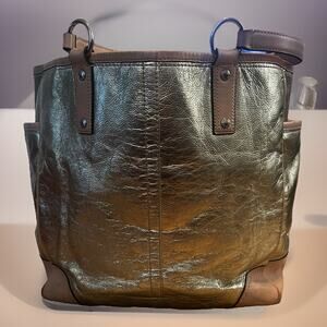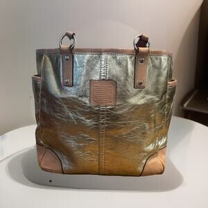 Coach Metro Metallic Gold Leather Tote Bag Pockets Double Handle Carryall Large