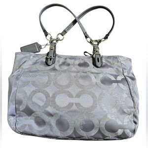 Coach Mia Op Art Gray Metallic Signature Tote With Dust Bag. New With Out Tags