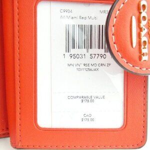 Coach Miami Red Mini Vintage Rose Medium Corner Zip Wallet NWT C9934.