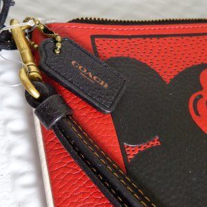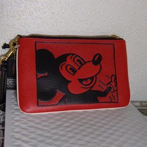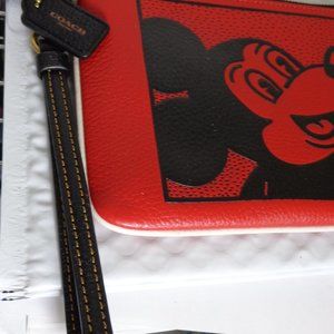 Coach Mickey Mouse Electric Red Leather Wristlet Keith Haring LTD Editio…